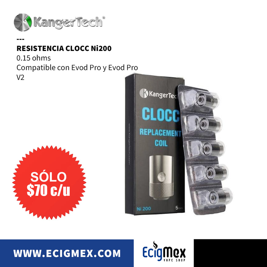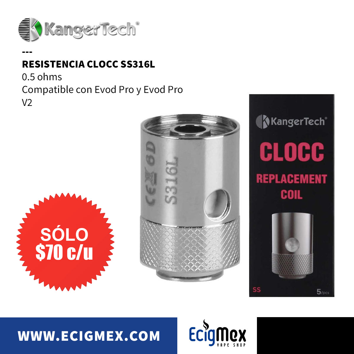 Resistencias para vape Kangertech, contamos con dos opciones, ambas compatibles con Evod Pro y Evod Pro V2: CLOCC Ni200 0.15 ohms Material: Níquel 200 Diseñada para vapeo en Modo Control de Temperatura CLOCC SUS316L 0.5 ohms Material: acero inoxidable Recomendado: 15-60W EL PRECIO ES POR CADA RESISTENCIA. Recuerda que somos la tienda de...